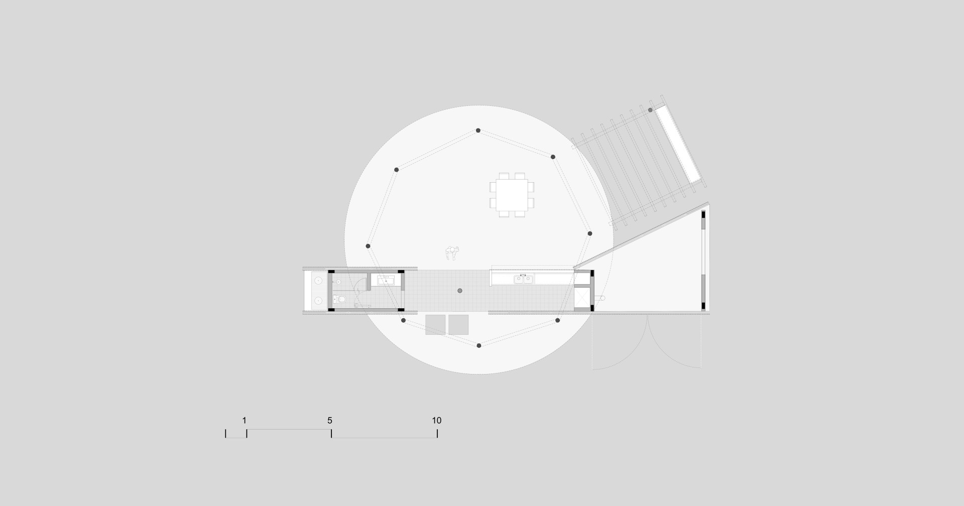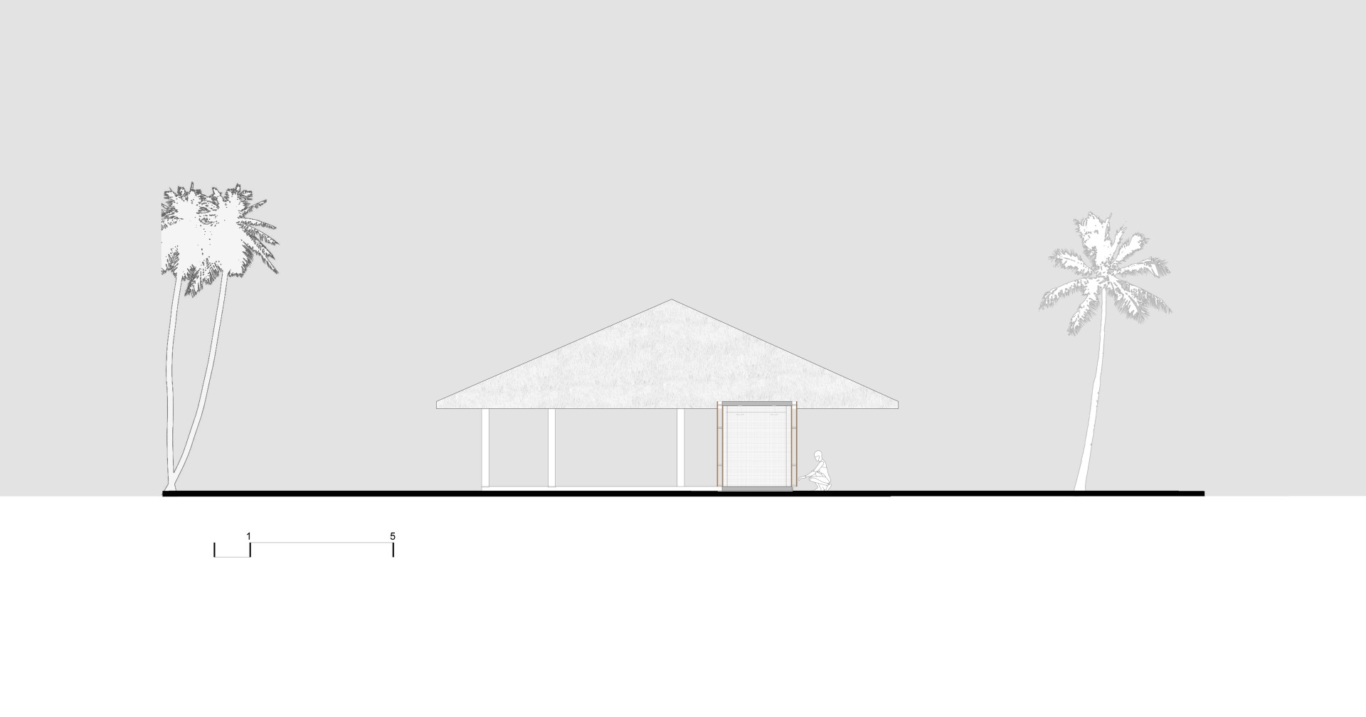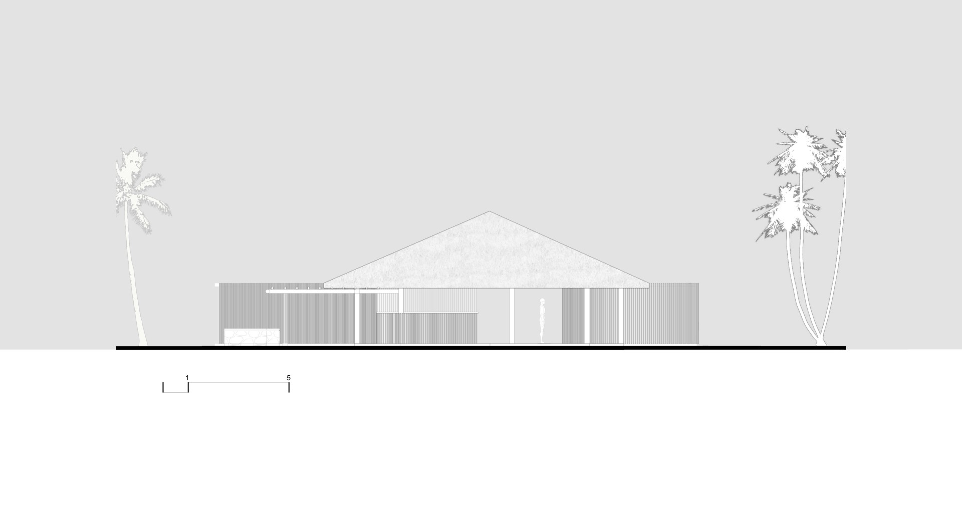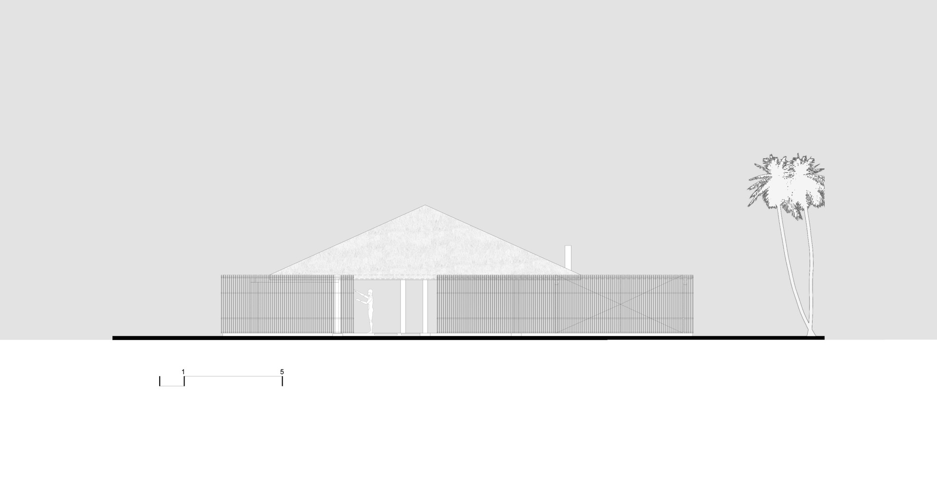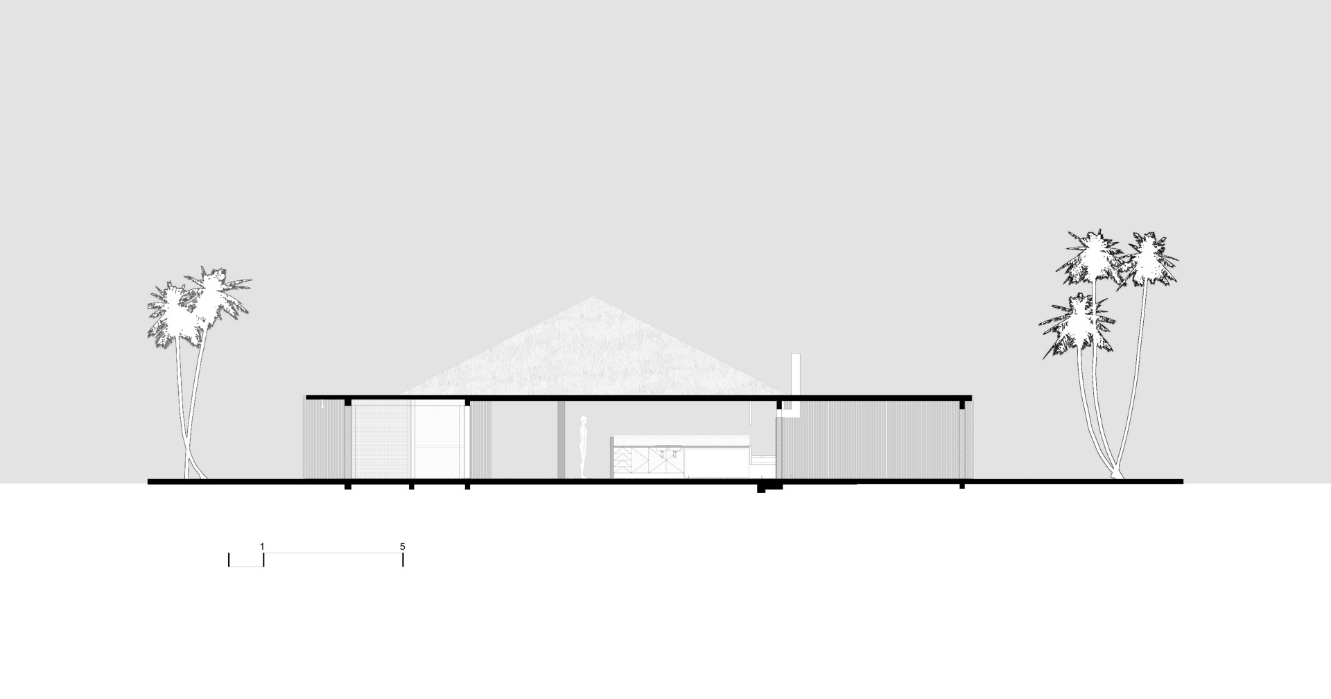 The whole program is integrated through a single concrete slab. The main facades are made of Brazilian cumaru wood screens, protecting those spaces that require more privacy, such as bathroom, and allowing the organization flows, as in the barbecue area, thus reinforcing the longitudinal character of the pavilion and promoting a balance between transparency and opacity.