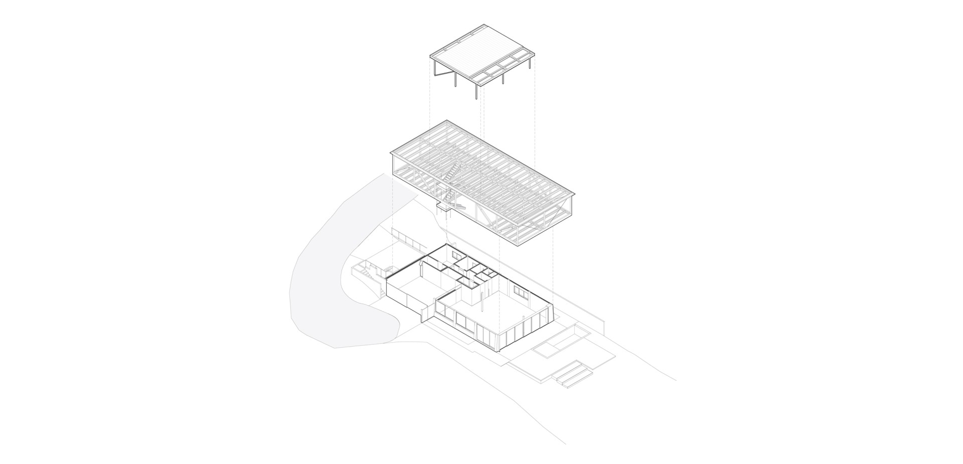 As the wood must be protected from rain directly, and as legislation does not allow major advances in setbacks, a system was developed where the frames could serve as physical protection for rainwater. To this end, supports were designed along the peripheral wooden beams to support the frame rails, freeing the internal space from the wooden structure's locking and bracing systems. In addition to this system of protecting the wood itself, a kind of second skin was provided throughout the house with wooden furniture slatted sunshades that serve as solar filter and visual control.